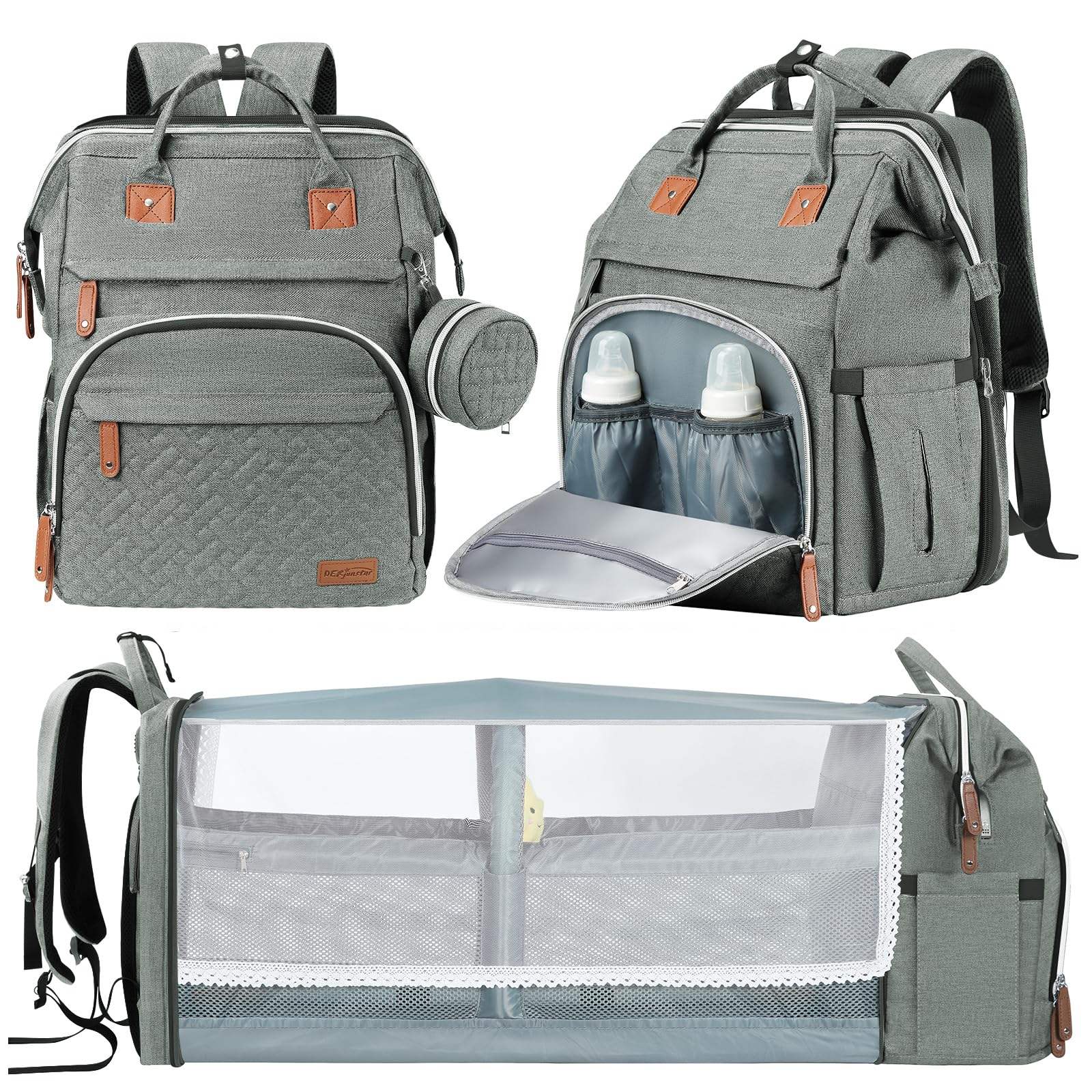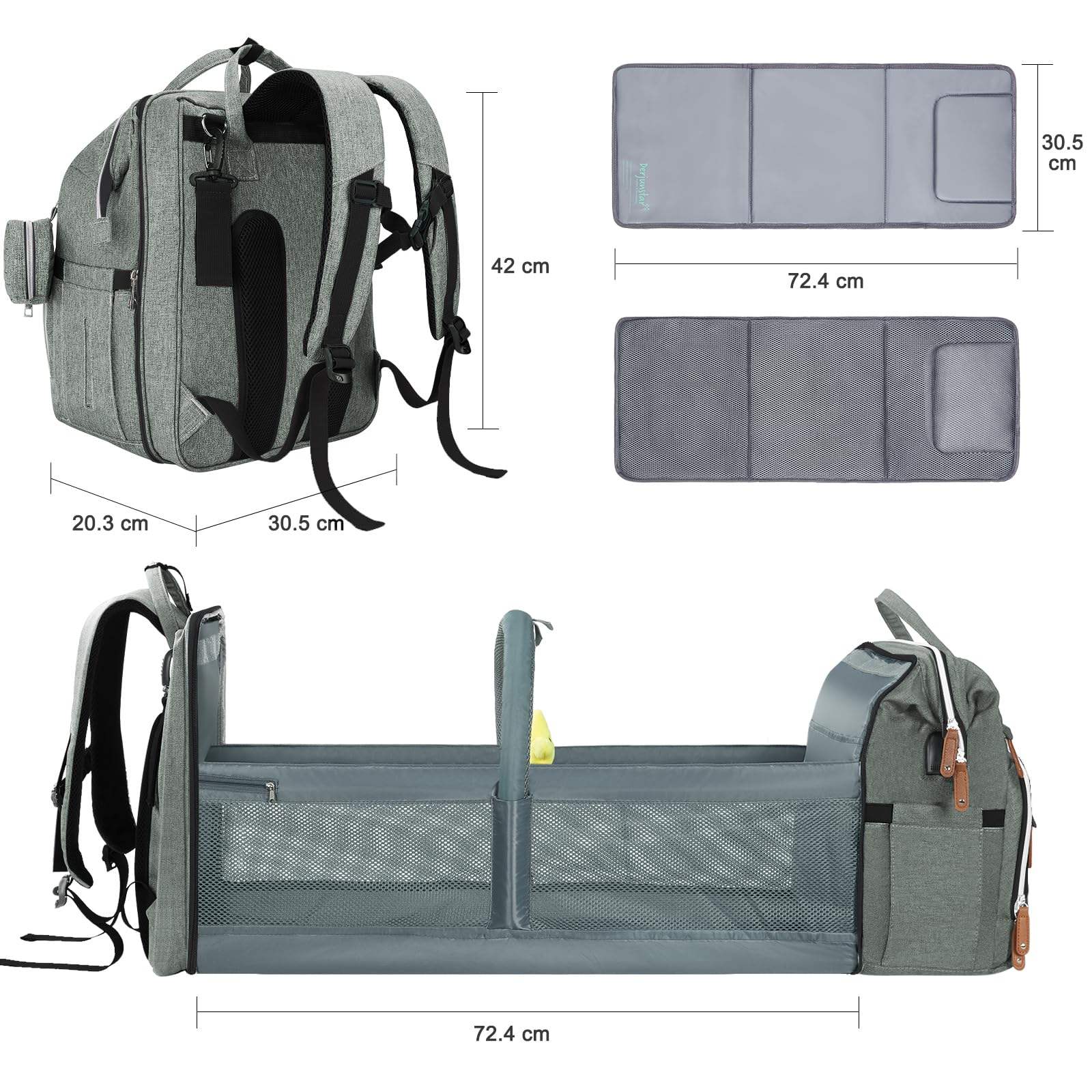 Multi-Functional Baby Diaper Bag with Foldable Crib & USB Port